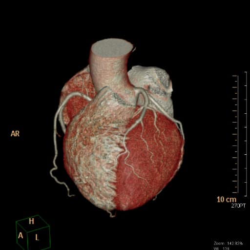 Mittels der Herz-CT können der Herzmuskel, die Herzkammern, die Herzklappen und vor allem die Herzkranzgefäße dargestellt werden.